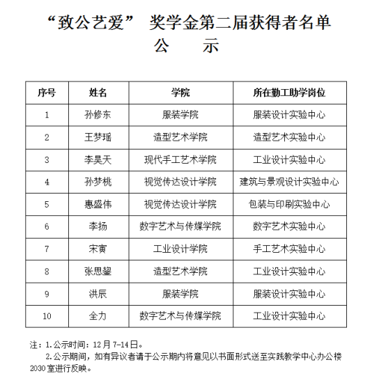 12月7日,“致公艺爱”奖学金第二届评审工作在艺术与设计实践教学中心党员活动室进行,山东荣寰律师事务所主任荣世海律师,艺术与设计实践教学中心主任教务处副处长张伟教授办公室主任刘婧婧出席评审工作会议评审小组组长李悝成员徐婷刘鸣王海涛王荔娇参加评审。