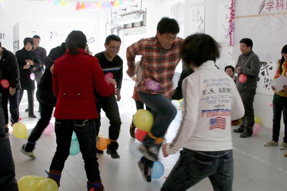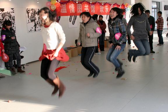 图书馆12月22日下午在图书馆一楼展厅举行2012年迎新年文化娱乐活动。图书馆馆长赵进、党总支书记徐月梅与图书馆全体职工欢聚一堂,喜迎新年。 图书馆一楼展厅张灯结彩,暖意融融。下午14时,活动开始,图书馆馆长赵进为活动致辞。他说,在2012年新年即将到来之际,我们欢聚一堂,共迎新年。我代表图书馆党政班子,向全体馆员、职工和干部,向在图书馆辛勤工作的勤工助学学生代表表示诚挚的慰问。向关心帮助图书馆发展的领导和友人表示衷心的感谢。祝大家新年愉快、身体健康、阖家幸福。 活动在欢快游戏吹气球中拉开序幕,图书馆全体职工分成四个组分别进行了顶气球、踩气球、蒙眼作画、念绕口令、夹气球接力跑以及跳大绳等游戏,每一个小组都有备而来,在活动中里体现了图书馆全体员工的精神风貌,体现了图书馆事业的蓬勃生机,也体现了各部门的荣誉感和进取心。大家欢声笑语,一下午的时间在不知不觉中就过去了。 此次活动全馆上下人人参与,其乐融融,气氛非常热烈,充分展现了图书馆全体职工团结向上、营造和谐团队的精神。