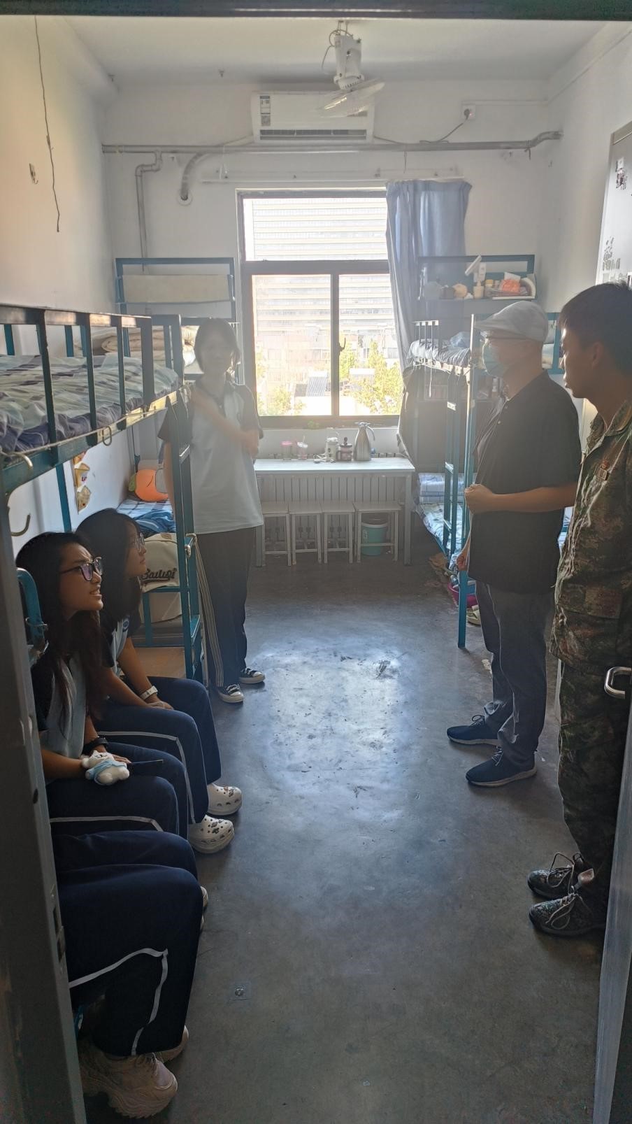 附中副校长孔大健带领综合管理团队成员对宿舍整理情况进行检查。