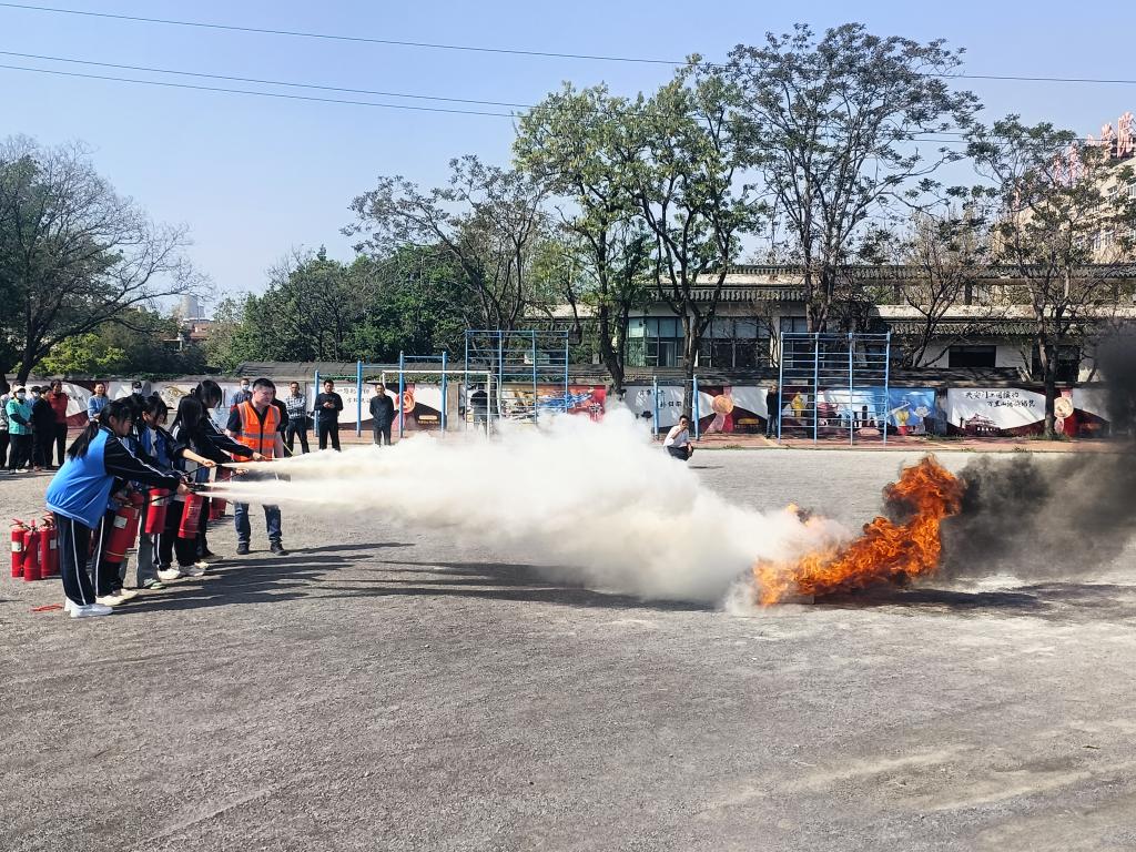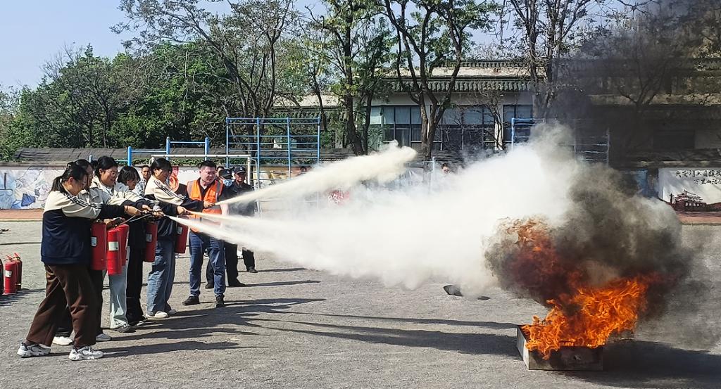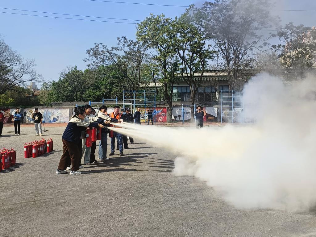 在认真听讲及观摩示范后,师生们亲自体验了现场灭火的过程。