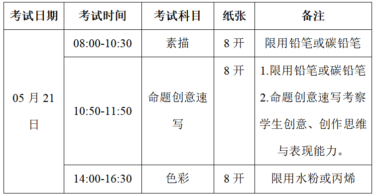 3.考试用纸(画纸)由学校在开考前统一发放,无需携带。