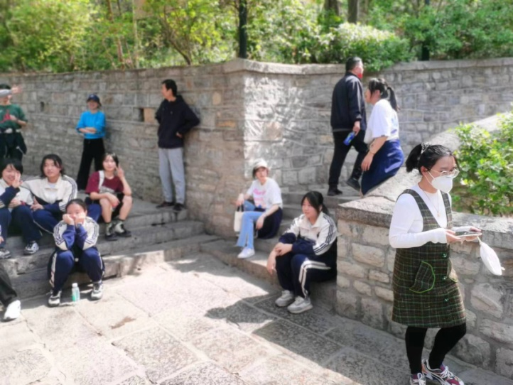 第四,在学校组织的登山活动中,学生互帮互助,照顾身体弱小的同学,发扬集体精神。并及时捡起垃圾桶旁边散落的垃圾。