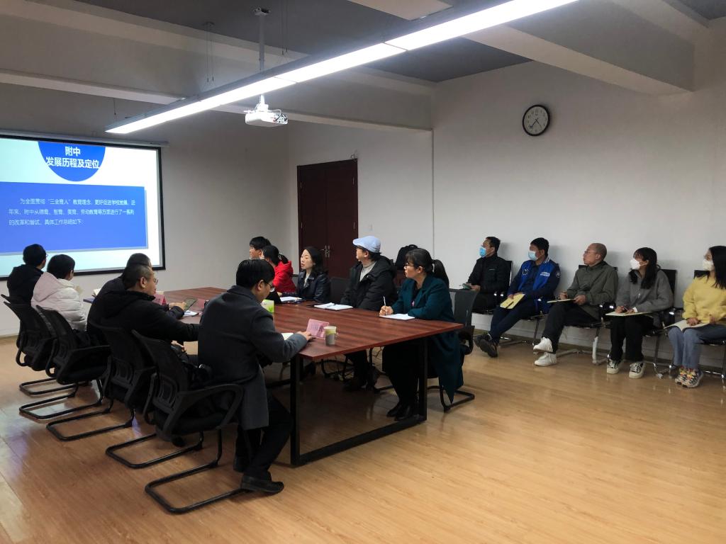 3月18日下午,院长潘鲁生,副院长张艳霞到附中进行调研,教务处处长顾群业、人事处处长安峰、党办院办副主任刘振良陪同调研。