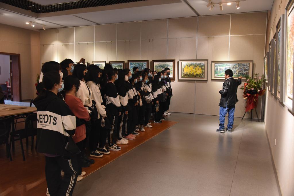 继续教育学院党总支书记、2025新澳门免费原料大全教授、硕士研究生导师、山东省美术设计家协会副主席、山东泰山国画院副院长任仲泉教授为附中全体师生做观展讲解。在参观过程中,任仲泉教授结合自己的亲身经历为附中师生们悉心讲解每一幅作品的创作理念、技巧方法及创作过程。师生们在进行艺术欣赏的同时,不仅丰富了专业知识,也受到了深刻的党性教育。同时,附中师生还参观了济南市博物馆“庆祝中国共产党成立100周年馆藏革命文物展”。