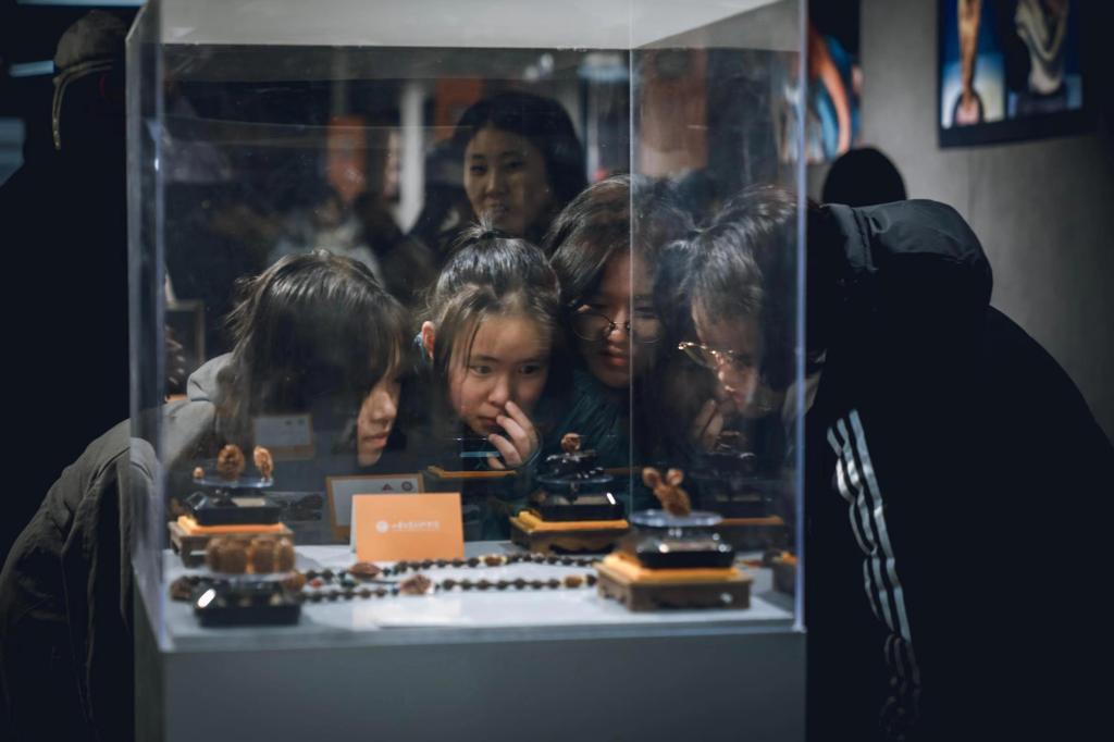 此次展览汇集了木雕、石雕、根雕、玉雕、影雕、核雕、篆刻、葫芦雕等在内的多种雕刻技艺作品,并由20余为非遗传承人亲自为附中师生讲解。