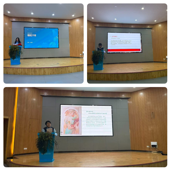 接下来是暑期艺术实践活动报告环节。活动中,同学们走进城市乡村,深入生活、参观调研、记录描绘,走访实践,认真观察记录了中华优秀传统图案的丰富内涵及视觉形象,对中国传统文化有了深入的感知与了解。