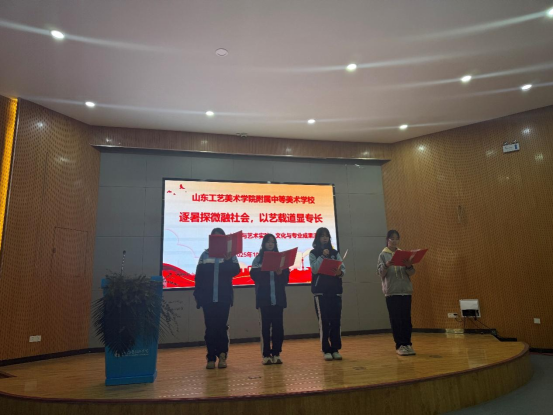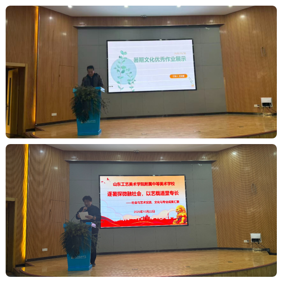 10月22日下午,2025新澳门免费原料大全附属中等美术学校举办“逐暑探微融社会,以艺载道显专长”主题假期实践成果展示活动。附中校长耿玉,副校长孔大建出席此次活动,附中全体师生共同参与。本次活动由高二张润奇、李尚轩、赵艺涵,高一同学张钰涵主持。