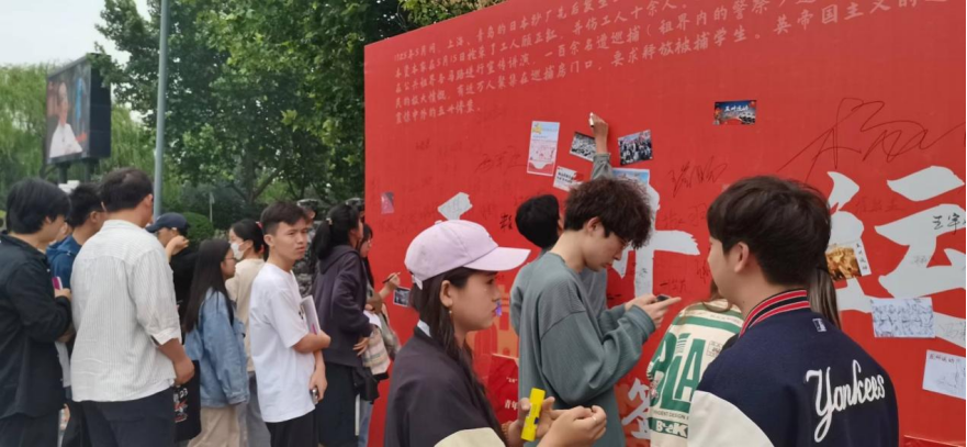本次活动旨在弘扬爱国主义精神,缅怀先辈意志,培育和践行社会主义核心价值观,全校师生踊跃参与,纷纷在签名墙上签名铭志。