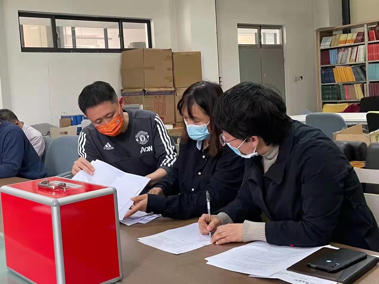 张振羽介绍了本次会议流程,与会党员分别对选举办法(草案)、监票人、计票人名单和补选候选人预备人选名单进行表决,获得一致通过。本次增补选会议,按照党章要求,实行差额选举,采取无记名投票方式增补选了王宁、王伟杰、王军强、王金安、张振羽为学团党支部委员。