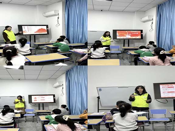 现代手工艺术学院组织各团支部通过观看红色视频、PPT专题讲解、互动交流研讨等开展集中学习,凝练行动倡议并集体宣读践行誓词。美美与共志愿服务队走进恒大绿洲社区,通过发放宣传手册、讲述红色事迹的形式宣讲精神内涵。志愿者走进长清区第二幼儿园,通过PPT展示、视频播放、手工互动等趣味形式开设红色小课堂,在双向实践中彰显新时代青年的责任与担当。