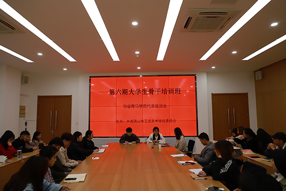 11月13日上午,“青马工程”第六期大学生骨干培训班学员与2019年山东省青马学员代表座谈会在长清校区第三会议室顺利召开,座谈会由校学生会秘书长葛俊杰同学主持。