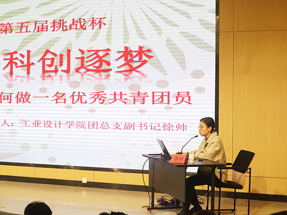 培训第三场工业设计学院团总支副书记徐帅围绕“党心百年,科创逐梦”为主题,进行“挑战杯”赛事解读。伊始,徐老师列举了神舟七号、嫦娥一号、新疆问题等鲜活事例,生动阐述了国家和个人的发展都是紧密相连的。随后,详细介绍了挑战杯的相关内容。明确了挑战杯的意义是将我们所学的知识与社会接轨,让理论变成实际。最后,徐老师希望各位基层团干部能够脚踏实地,为中华民族的伟大复兴做出自己贡献。
