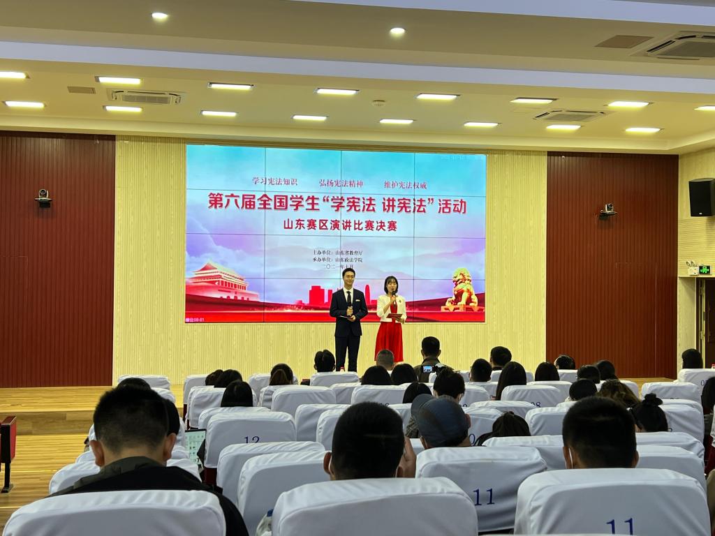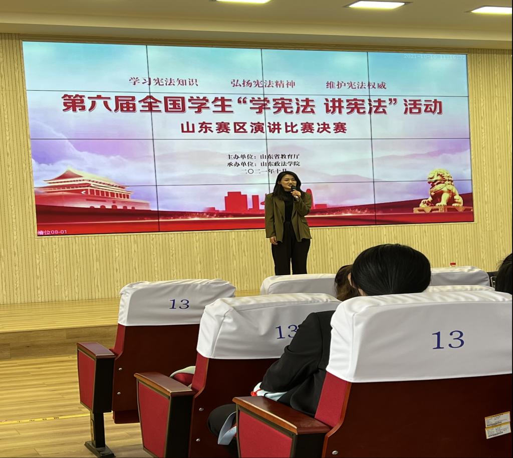本次活动山东赛区演讲比赛共有来自全省16市和73所高校的120余名选手参加。分小学、初中、高中和高校4个组别进行。选手们围绕宪法主题,结合生活实际,畅谈对宪法的理解与感悟,生动展示了山东青少年学生宪法学习和教育成果。我校王佳琪同学以“法治与德治相结合”为切入点,呼吁大家知法学法懂法,将法立于心中。