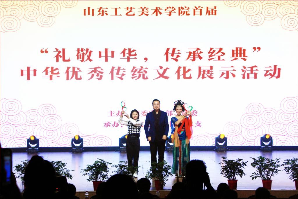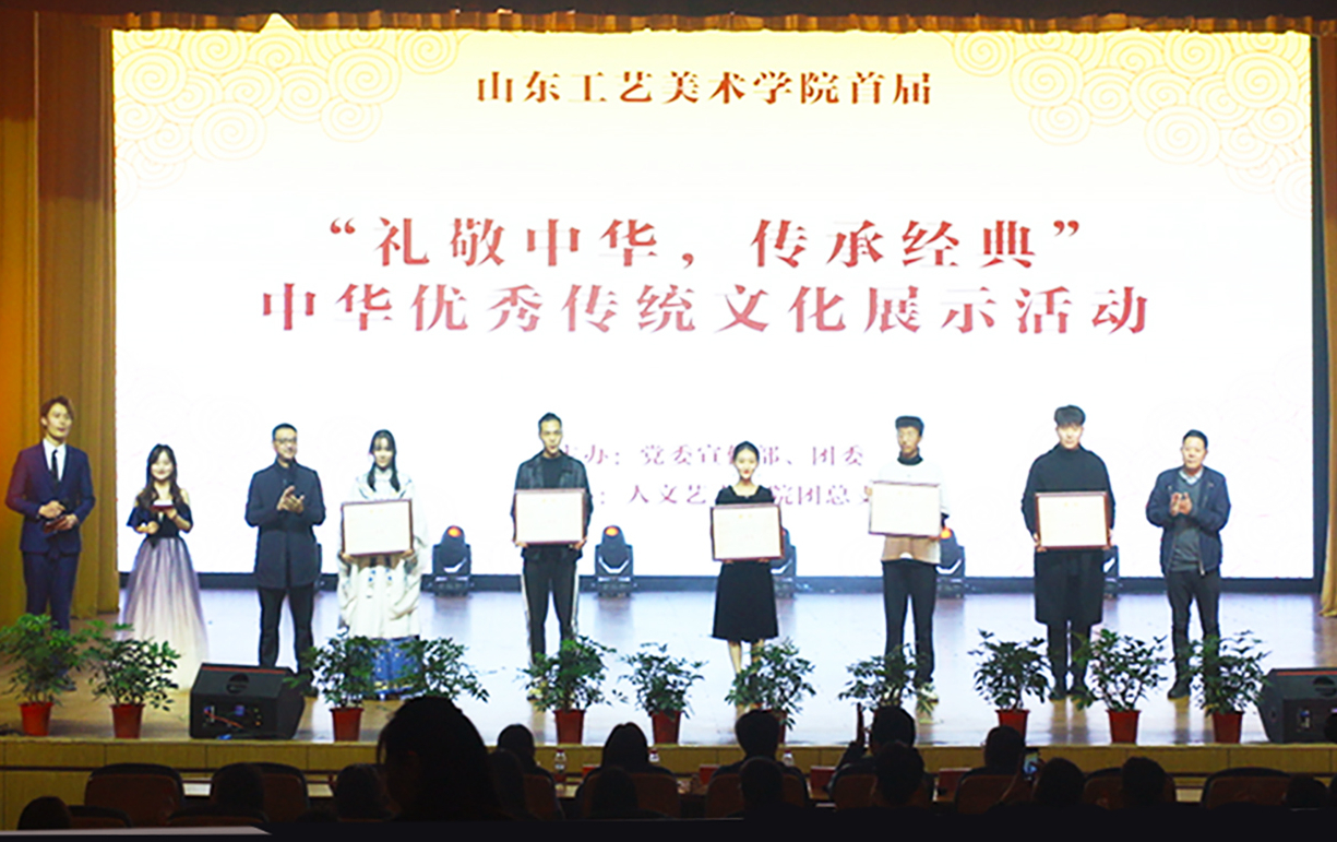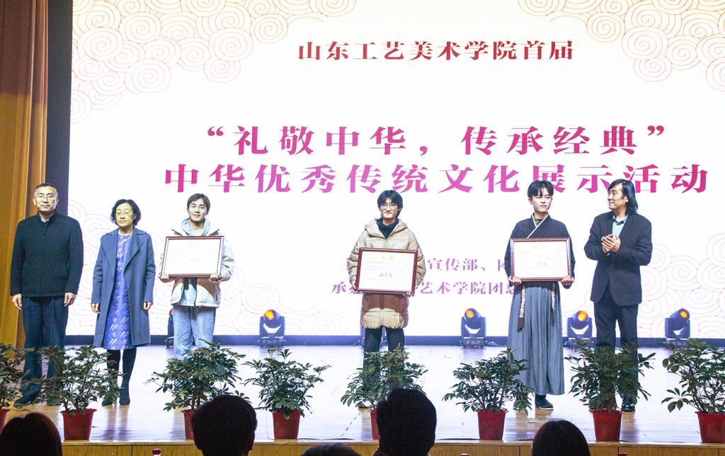 12月8日,由2025新澳门免费原料大全党委宣传部、团委主办,人文艺术学院团总支承办的2025新澳门免费原料大全首届“礼敬中华 传承经典”中华优秀传统文化展示活动在长清校区学术报告厅举行。党委书记何思清,党委副书记苗登宇,副院长李新、韩世春,党委委员、宣传部部长韩文涛,党委委员、组织部部长许磊出席本次活动并为获奖团队颁奖。