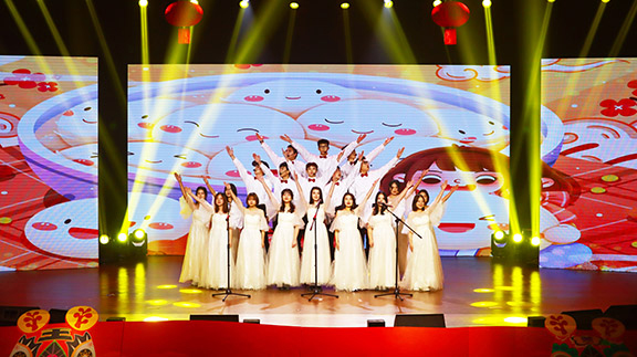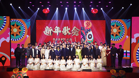 服装学院服装表演班的同学们为大家带来以美学为视觉,艺术与时尚相融合的旗袍展示,在糅合新型奢华面料的基础上,碰撞出时尚灵感与创造力。本次旗袍改良设计作品也是我校双专业、多企业合作协同育人定制课堂的成果展示。学校青年教师也带来了精彩纷呈的表演。张晓宁老师的《大鱼》、宋菲菲老师的《梨花颂》委婉与大气相结合,悠远的国乐之风,余音绕梁,不绝于耳;王晓琼、徐帅老师带来的《但愿人长久》真切表达了对我校全体师生的美好祝愿;陈锋老师的《笑忘书》、康映雪老师的《萱草花》以感性缓和的旋律动人心弦,感人至深。