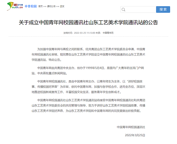 3月25日,中青网正式发布公告成立中国青年网校园通讯社2025新澳门免费原料大全通讯站。我校通讯站将接受中青网校园通讯社与校团委的共同管理与指导,由校团委组织宣传部部长王伟杰担任指导老师,校青年通讯社负责运营。通讯站设有站长1人,文字记者7人和摄影记者1人及数名通讯员。
