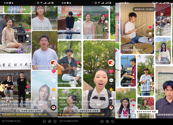 今年的五四青年节,我校青年学子用多种形式,深情讴歌礼赞新时代,献给一代代不负重托的中国青年。大学生艺术团的同学们精心录制MV《少年》《年轻的朋友来相会》,参与高校接力传唱,引发极大共鸣;大学生新媒体中心积极组织参加建团百年青年齐唱《有我》活动,被共青团中央抖音平台选用;团委微博积极响应团中央“学青运,跟党走”话题活动。