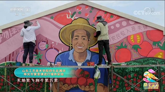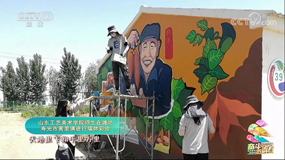 (图为我校师生在潍坊寿光市营里镇进行墙体彩绘)