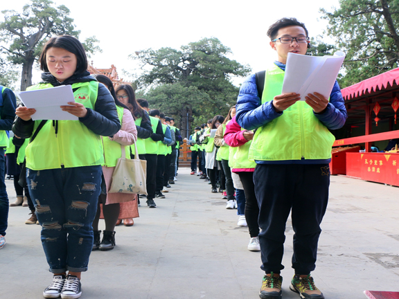 中国海洋大学、山东财经大学、山东农业大学等10所高校300余师生共同参加了此次第三届第二期“中华学子朝圣行”活动。我校第三期大学生骨干培训班班主任团委组织宣传部部长王军强、指导教师建筑与景观设计学院团总支书记杜鹏及培训班学员参加了此次活动。