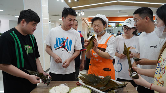 “粽子包紧压实点儿,不然容易露馅儿”“我是不是馅儿放得有点多呀?”6月3日上午,长清校区餐厅一楼和二楼传出阵阵欢声笑语。原来这是团委、后勤管理处饮食服务中心联合举办的“浓情粽意,弘扬传统文化”端午节系列活动,300余名师生欢聚在一起,共同体验民俗文化的魅力。