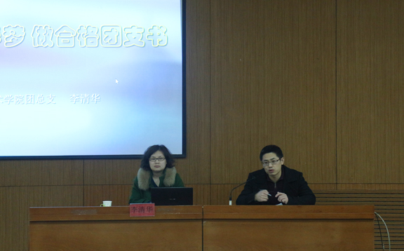 3月18日下午,由团委主办的加强基层团组织建设月系列培训活动在长清校区阶梯一教室举办,来自各学院的新任团总支学生委员、2013级新任团支部书记、2014级团支部书记参加了此次培训活动。现代手工艺术学院团总支书记李清华主讲,团委组织宣传部部长王军强主持此次讲座。