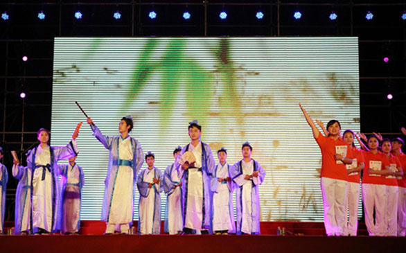 本次科技文化艺术节开幕式以精彩的舞蹈拉开帷幕,动感的表演迅速引爆全场,充满活力与激情;由校大学生合唱团带来的歌曲《在希望的田野上》,悦耳动听,唱出了对未来的希望;善舞堂表演的舞蹈《源》,挥舞的长袖,快慢有序的节奏,将观众引入古典之美;青春年华里的我们,需谨记古训,朗诵《青春对话》,带我们穿越时空,回到古代私塾学堂,重温《三字经》等古人训语。