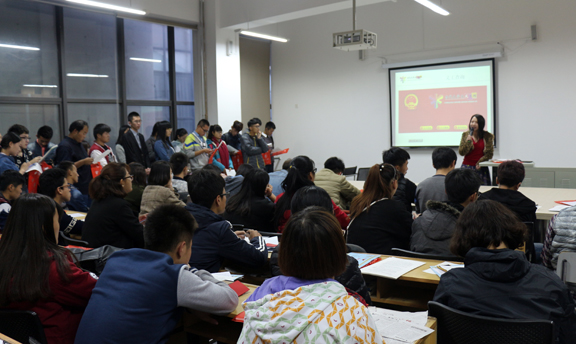 活动伊始,李成为同学们播放了央视为当代大学生义工网录制的短片,并介绍了活动的公益形象大使——国内著名音乐组合水木年华,结合生动的ppt,他向同学们诠释了生命的正能量。李成为大家讲述了史玉柱的成功事迹,以此激励同学们在学好专业的同时也应参加社会实践活动,丰富自己的阅历。最后,他为大家讲解了爱心笔公益活动的大概流程,传达了活动理念及内容。活动以爱心笔为载体,鼓励大学生志愿者以义卖爱心笔的形式参与到活动中来,每义卖一支爱心笔就是在奉献一份爱心,让每一个人都可以轻松参与到公益慈善事业中来。