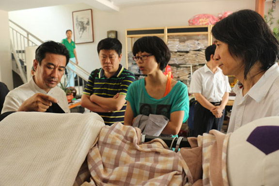 一行人在李亦阳的带领下,先后参观了顾家老粗布批发市场“棉世纪”、 “惠文服饰”和“至尊华冠家居”商铺,以及锦秋街道湾头村的代表商铺等。 参观结束后,我校师生与李亦阳、程庆普、开发区工作人员、顾家老粗布市场经营服装业户等三十余人在顾家老粗布市场会议室进行座谈。李亦阳介绍了博兴县的基本情况,顾家老粗布市场负责人对当地老粗布的市场情况作了详细的介绍,业户代表就目前所面临的具体问题与我校师生进行了对接交流。