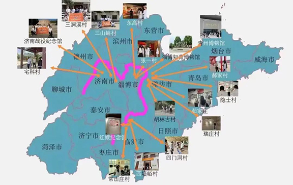 团队实地走访了山东省四市的红色文化特色村、乡村振兴齐鲁样板示范村、红色博物馆等,并与当地党建负责人沟通访谈。调研旨在了解红色文化教育的发展历程及其保护利用,探究打造红色党建样板案例的方式方法。团队成员真切地意识到要立足新时代大环境,充分利用数字化与现代科技,合理运用引进资源,脚踏实地,层层递进,真正探索出一条红色教育助力乡村振兴的新模式。