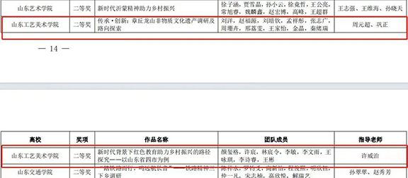 团队以“寻访龙山文化,赋能乡村振兴”为主题,成员们通过调研龙山文化博物馆,中国龙山文化黑陶研究中心,农作物种植基地,走访当地居民、手工艺匠人等,对龙山文化进行深入挖掘、转化,发挥专业优势将龙山文化与现代产品设计相融合,依托“山东手造”区域文化品牌,弘扬和传承中华优秀传统文化,聚力打造凸显新时代特点的“乡村文化IP”。