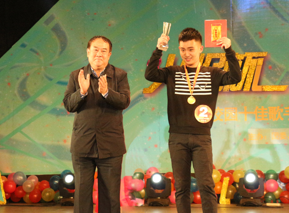 随后,第十届校园十佳歌手彭木以一首《月亮惹的祸》将现场推向了高潮。最后的冠亚季军争夺赛中,选手们选曲风格迥异,或是简单明快、或是深情优雅。刘炼在动感的节奏演绎出了一匹来自北方的《狼》的呐喊,不为别的只为传说中美丽的草原;眼泪是苦,眼泪是伤悲,段浩宇以一首《眼泪》展示了其扎实的唱功技巧;任铭超的一首《像个孩子》充分传达了自己的心声。最终,来自数字艺术与传媒学院的任铭超,人文艺术学院的刘炼,视觉传达设计学院的段浩宇分别获得冠亚季军。另外,工业设计学院的马慧获得“最佳人气奖”,其他6位选手分别获得“十佳歌手”称号。整场大赛,在本届十佳歌手合唱的《我爱你中国》中圆满结束。