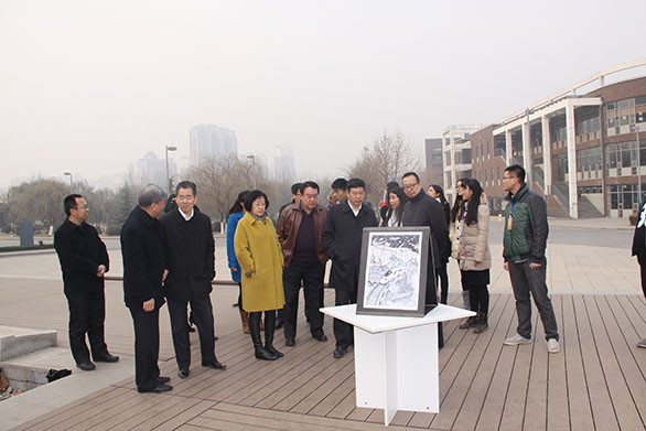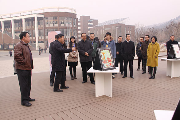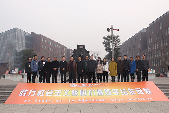 12月15日,党委书记于茂阳,院长潘鲁生,党委副书记杨新力,副院长李新、刁在祥视察在长清校区展出的“践行社会主义核心价值观”手绘大赛作品展。