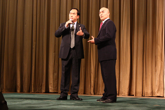 作为建校四十周年系列活动之一,并为加深我校师生对传统文化的了解,国粹•京剧演出于10月19日晚在长清校区校学术报告厅举办,山东省京剧院带来一场京剧盛宴。党委副书记杨新力、副院长张云龙、苗登宇,院长助理王立果及外宾、校友及师生500余人共同观看了演出。