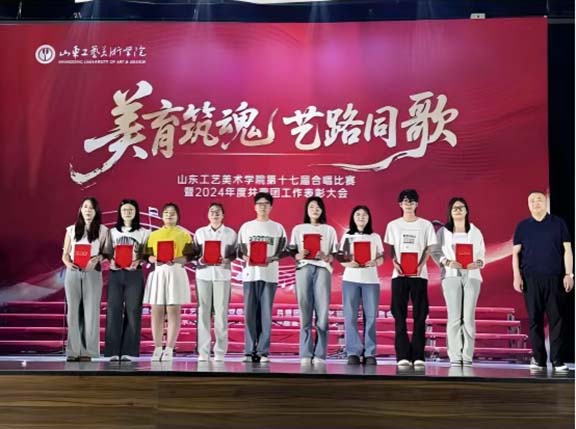 经专业评审,数字艺术与传媒学院代表队、服装学院代表队凭借精彩的演唱荣获一等奖;现代手工艺术学院代表队、应用设计学院代表队、造型艺术学院代表队荣获二等奖;人文艺术学院代表队、建筑与景观设计学院代表队、基础教学部代表队、工业设计学院代表队、视觉传达设计学院代表队荣获三等奖。