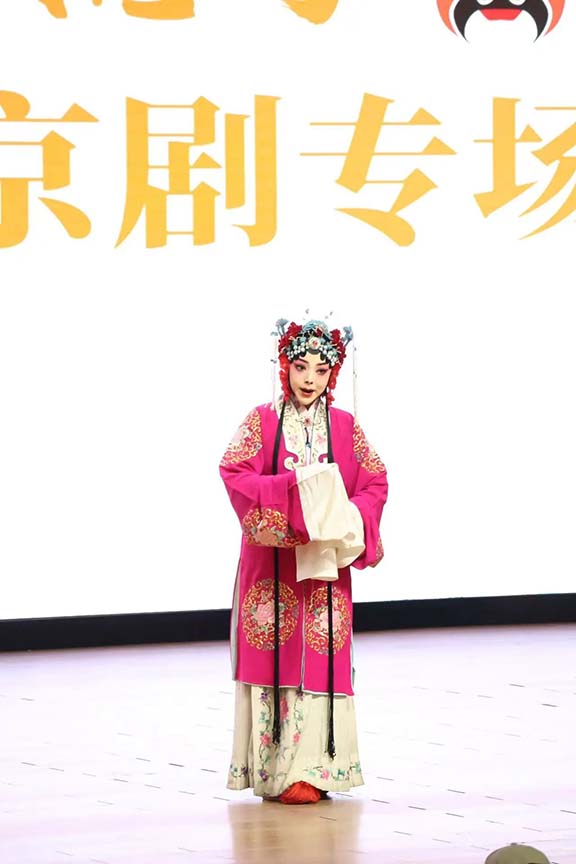 本次活动由学校团委主办,演出以“行当展示+经典选段”为脉络,融合经典剧目展演与互动体验,为现场观众带来一场沉浸式京剧艺术体验。生行《翠屏山》的英武气概、旦行《锁麟囊》的婉约深情、净行《铡判官》的刚正不阿、丑行《下山》的诙谐灵动,生动展现京剧“唱念做打”的技艺精髓,传递中华传统文化的深厚内涵;经典选段《状元媒》《坐宫》等选段通过家国叙事与人性刻画,引发学生对传统文化中“忠孝节义”的思考;《铡美案》的正义宣言与《白蛇传》的唯美爱情,进一步拉近了青年学子与传统文化之间的距离。