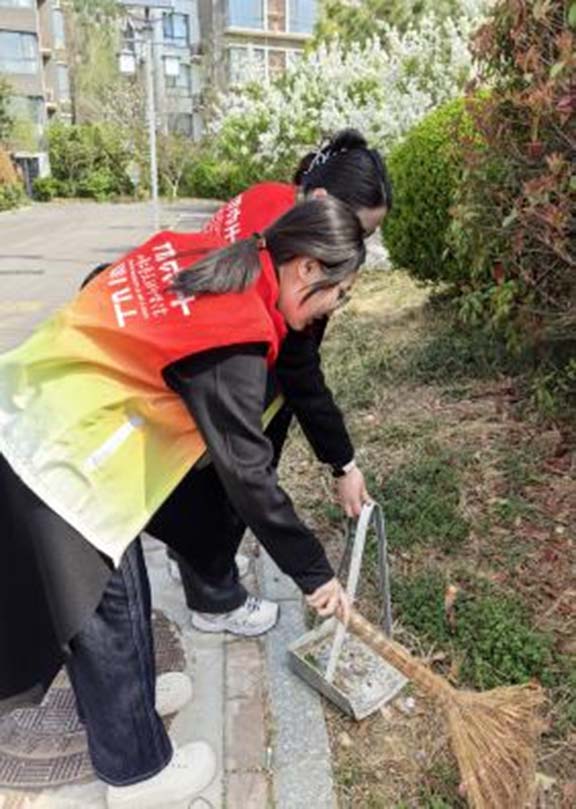 活动现场,志愿者们分工明确、热情高涨。负责路面清扫的志愿者们手持扫帚,认真地将落叶和垃圾扫到一起,再仔细装入垃圾袋;承担绿化带清理工作的志愿者们则弯下腰,仔细捡拾隐藏在灌木丛中的烟头、纸屑等垃圾。在大家的共同努力下,社区道路和绿化带变得干净整洁,面貌焕然一新。
