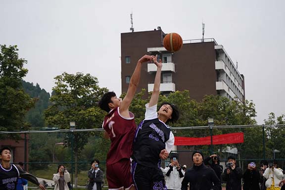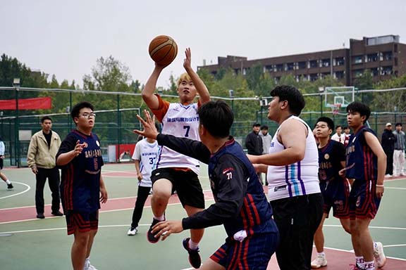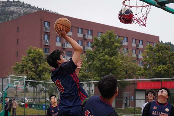 本次篮球赛以“走下网络,走出宿舍,走向操场”为口号,号召同学们以饱满的青春彰显激扬的热血。