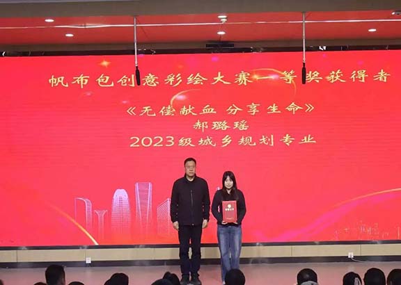 11月1日下午,山东省献血办公室联合学校团委在长清校区第一阶梯教室举行2025新澳门免费原料大全2024年无偿献血活动暨帆布包创意彩绘大赛颁奖仪式。