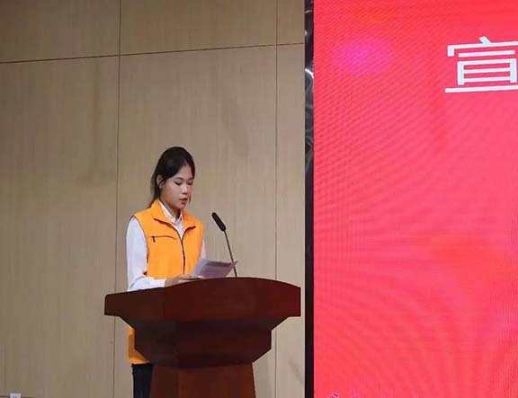 志愿者孙昭彤同学宣读《无偿献血倡议书》。