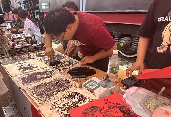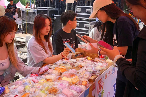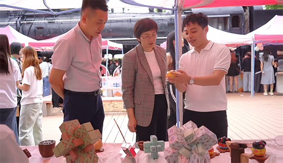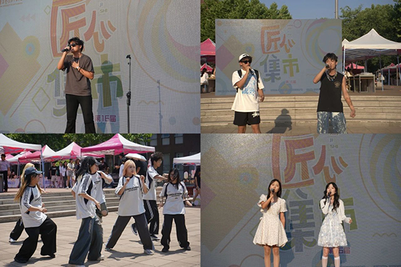 集市现场气氛热烈,人潮涌动。山工艺学子们纷纷展示着自己的匠心之作,从传统的手工艺品到现代的创意设计,无不展现出了高超的技艺和独特的创意。参观者可以在这里与手工艺人进行交流,了解他们的创作过程和故事,感受艺术魅力。此外,集市还设置了多个互动体验区,让参访者们能够亲身体验手工艺的乐趣。除展位外,现场还安排了多场文艺表演,音乐、舞蹈等各种艺术形式纷纷登场,为观者带来了视听盛宴,也为集市增添了欢乐氛围。