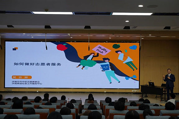 作为济南善诺社会工作服务中心党支部书记、主任,他是全国首批青少年事务社会工作示范项目负责人,也是山东省首个共青团购买社区青少年社会工作服务项目社工,更是山东省最早的社会工作者之一。吴京振在宣讲中细致地阐述了如何有效地开展志愿服务工作,他结合自身丰富的实践经验,提供了一系列的方法和策略,激励同学们积极参与社会服务活动,以实际行动奉献社会。