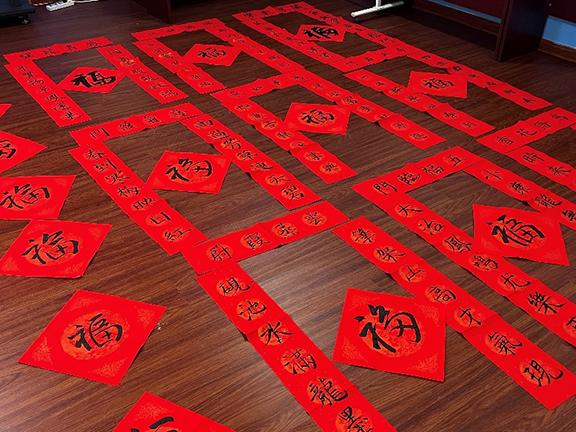 一行行俊秀苍劲的书法,一句句墨香四溢的语句,这些字里行间,不仅传递着节日的喜庆,更流淌着文化的血脉,温暖着人们的心田。满天星志愿者们用笔墨为社区居民送上了真挚美好的祝愿,也为即将到来的春节增添了一份特别的温暖。