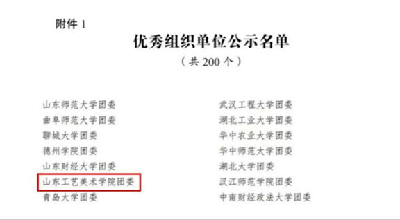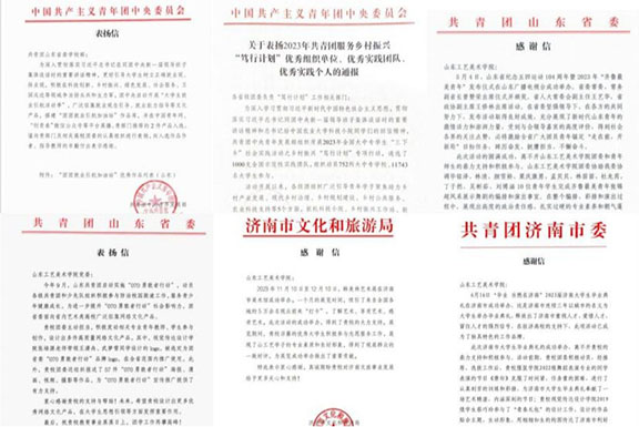 始终坚持“为人民而设计”的价值追求,注重引领山工艺学子以我所学服务社会,用我所学服务人民,积极引导团员青年开展各类社会服务活动,在服务社会中全面成长成才,彰显山工艺学子青春奋斗风采。团委相关工作收到团中央、团省委、团市委、济南市文旅局等单位表扬信(感谢信)6封。学校老师指导学生创作的短片《青春建功》入选“团团就业引航加油站”优秀作品,收到团中央表扬信,是山东省唯一受到表扬的高校。学校相关师生作品选为团省委“070勇敢者行动”品牌logo,在全省范围推广使用。学校团委对“毕业 当燃在济南”2023届济南大学生毕业典礼工作鼎力支持,选送节目、设计《毕业当燃在济南》人才政策宣传册等。承办“立德树人文艺汇演暨山东省第七届大学生艺术展演”相关工作,为美育培根铸魂工作贡献力量。山工艺学子的身影在社会中频频亮相,青春奋斗的努力饱受赞扬,唱好了山工艺好声音。