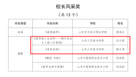 我校荣获“优秀组织奖”,并在此次活动中斩获20个奖项,包括校长风采奖2项、一等奖10项、二等奖6项、三等奖2项,获奖作品涉及书法、摄影、设计、绘画、微电影、艺术实践工作坊、高校美育改革创新优秀案例奖等多个组别。我校团委社团管理部部长徐亚辰荣获“优秀美育管理工作者”称号。