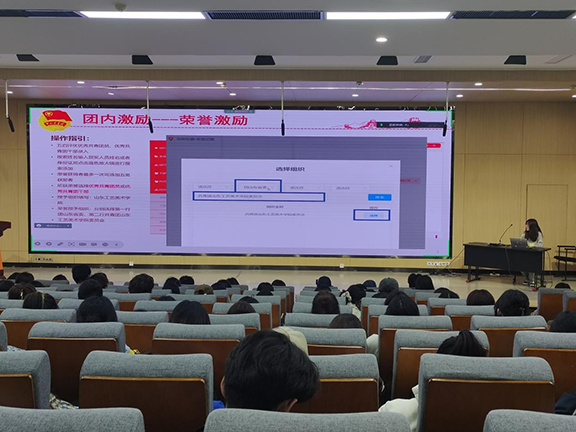 姜美娜以“智慧团建”操作指引为主题,从教育实践、对标定级、团员管理、团内激励、两制五个方面向团干部们全面解读了“智慧团建”系统。结合学校团建工作基本情况和实际工作,就如何建立优秀团支部、各基层团组织如何在系统整合汇总团关系等疑难问题详细解释,同时也对基层团组织存在的共性问题及解决方法进行了一一解答。通过讲解,团干部们进一步熟悉掌握“智慧团建”系统的操作流程。