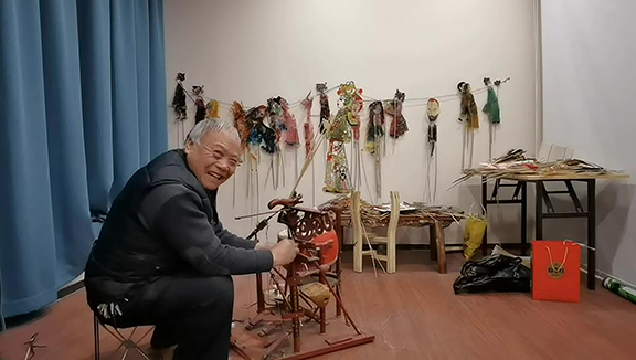 (图为数字艺术与传媒学院团队采访泰山皮影戏手艺人)