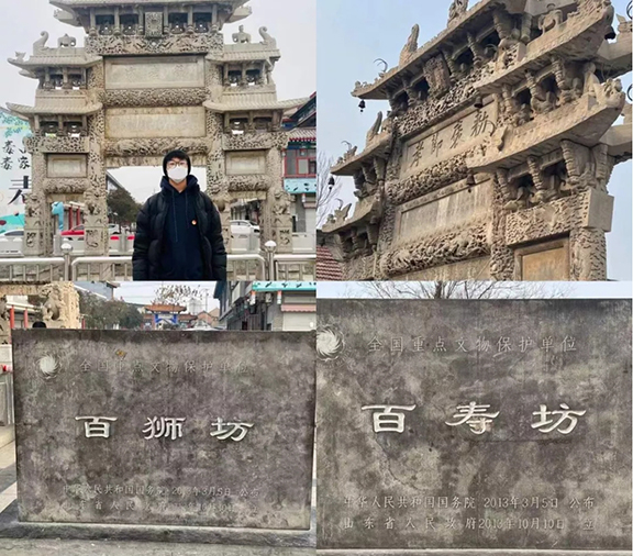 (图为现代手工艺术学院邢政、任艺同学对清代石雕艺术的工美风格进行考察)