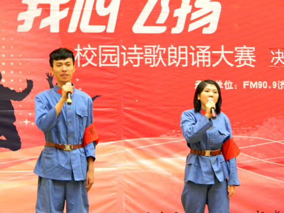 6月1日,由山东省学生联合会、济南人民广播电台联合举办的“声动泉城 我心飞扬”校园诗歌朗诵大赛圆满落幕。在我校团委的积极组织和严格筛选下,共选送了郁王白云、赵恒义与刘肇兴两支队伍参加比赛,并取得喜人成绩。 本次大赛以迎接建党90周年为主题,面向所有驻济高校展开,共有约300组选手参加比赛,经过初赛、复赛的激烈角逐,18支队伍脱颖而出,参加了在济南人民广播电台的演播大厅举行的决赛。在绝大多数由专业人员组成的参赛队伍中,我校学生郁王白云、赵恒义以初赛第一名、复赛第二名的好成绩进入决赛。他们以其出色的赛场表现,博得台下评委及观众的阵阵掌声,充分展现出了我校学生的参赛水平,荣获大赛三等奖的骄人成绩。并于5月24日做客经济广播的每天上午9点到12点的《非想非非想》节目。 此次比赛不仅给同学们创造了一个展示自我的平台,更加强了与其他高校之间的联系,培养了同学们的爱国主义情感。希望获奖同学再接再厉,其他同学以此为榜样,积极进取,争取为我校再添光彩。