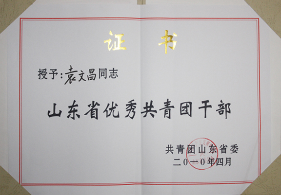 我校团委书记袁文昌荣获“山东省优秀共青团干部”称号 [附图]