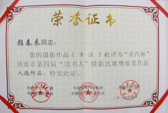 我校在“重汽杯”济南市第四届“读书人”摄影比赛暨展览活动中喜获佳绩
